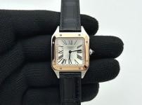 21534930 F1공장 까르띠에 산토스 뒤몽 라지 38mm 로즈골드콤비 실버다이얼 블랙가죽스트랩